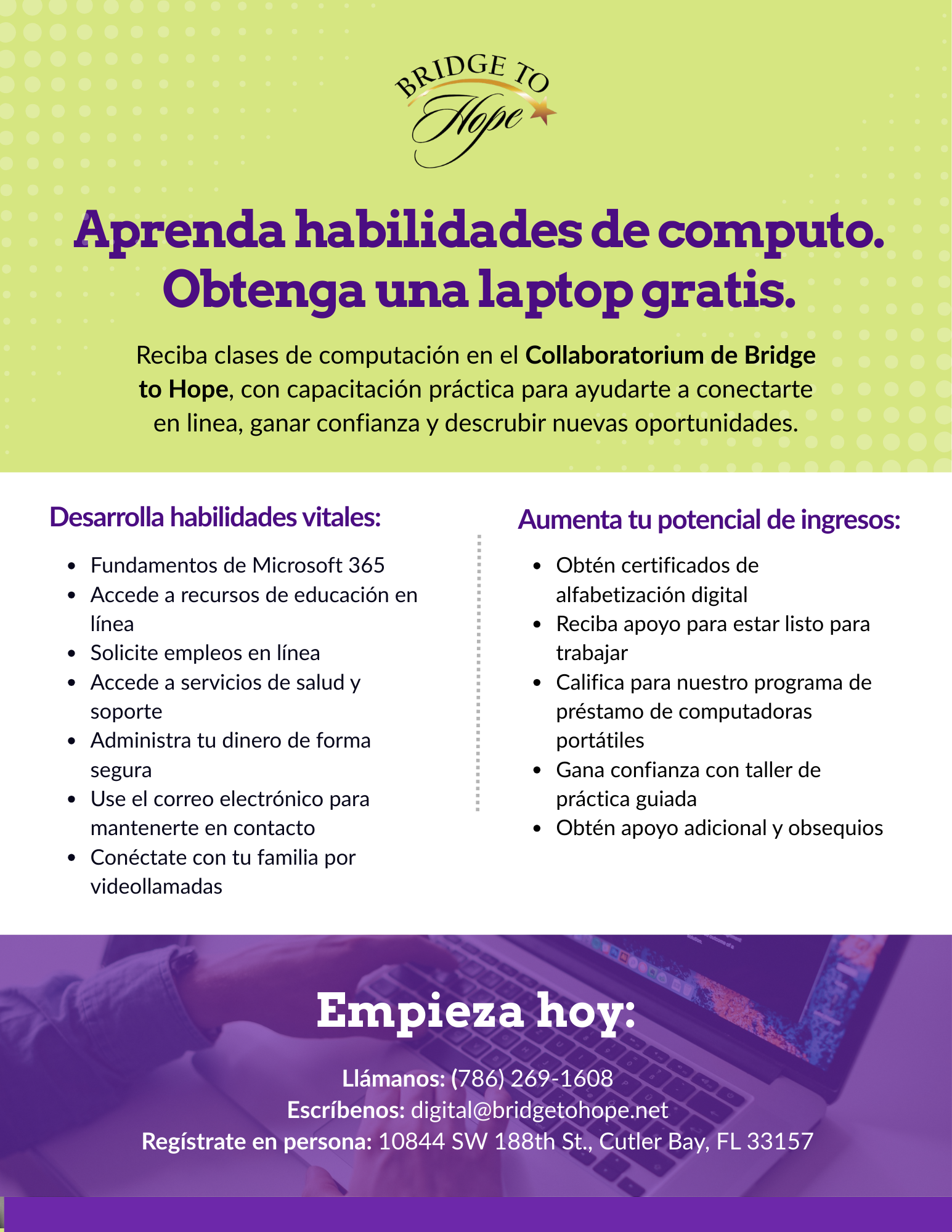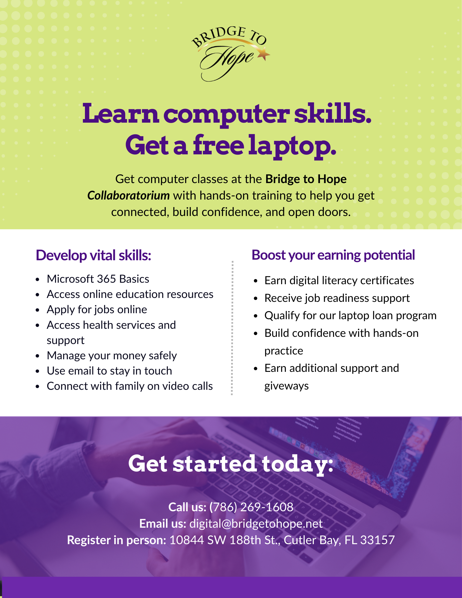 Through our Bridge to Hope E-Quality Program (part of our Digital Bridge series of initiatives), high-performance laptops and vital computer training is being made available to households without these valuable tools.